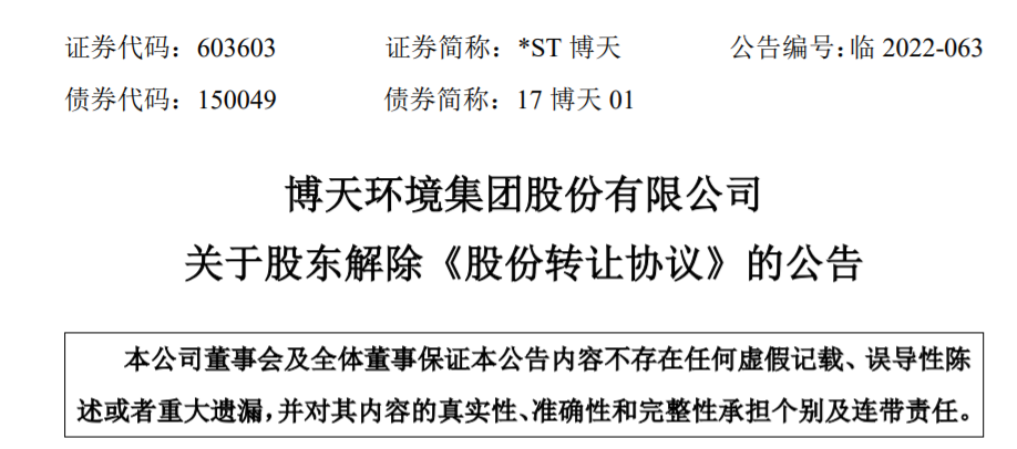 6月22日,*ST博天發(fā)布公告,此前,博天環(huán)境集團(tuán)股份有限公司(以下簡稱“公司”)股東國投創(chuàng)新(北京)投資基金有限公司(以下簡稱“國投創(chuàng)新”)、上海復(fù)星創(chuàng)富股權(quán)投資基金合伙企業(yè)(有限合伙)(以下簡稱“復(fù)星創(chuàng)富”)與葛洲壩集團(tuán)生態(tài)環(huán)保有限公司(以下簡稱“葛洲壩生態(tài)”),簽署了《關(guān)于博天環(huán)境集團(tuán)股份有限...