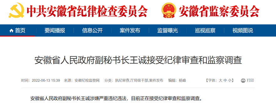 6月13日,據(jù)安徽紀(jì)檢監(jiān)察網(wǎng)消息,安徽省人民政府副秘書(shū)長(zhǎng)王誠(chéng)涉嫌嚴(yán)重違紀(jì)違法,目前正在接受紀(jì)律審查和監(jiān)察調(diào)查。值得注意的是,前不久,王誠(chéng)剛剛調(diào)整過(guò)工作崗位,從海螺集團(tuán)的“一把手”改任安徽省人民政府副秘書(shū)長(zhǎng),履新不到一個(gè)月。公開(kāi)資料顯示,王誠(chéng)出生于1965年3月,安徽淮南人,在擔(dān)任安徽省人民政府副秘書(shū)...