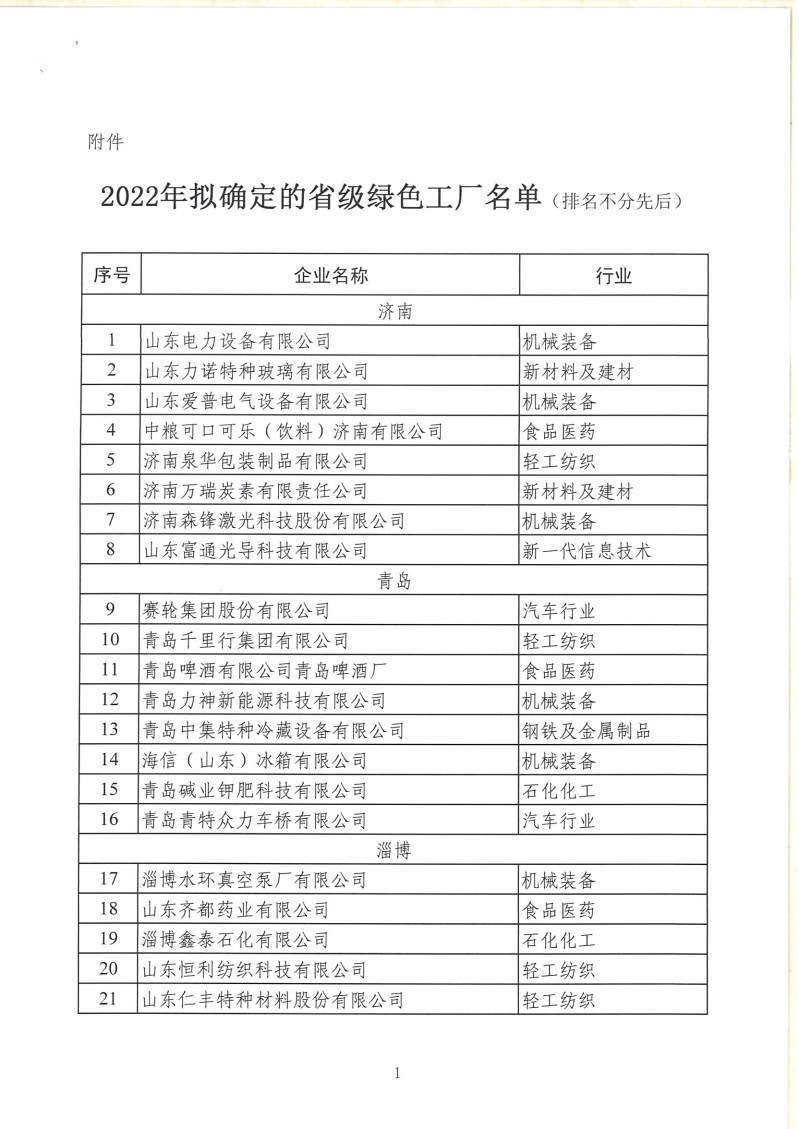 山東省工業(yè)和信息化廳關(guān)于2022年省級(jí)綠色工廠名單的公示 為加快推進(jìn)我省綠色制造體系建設(shè),省工業(yè)和信息化廳組織開展了2022年省級(jí)綠色工廠推薦工作。經(jīng)企業(yè)申報(bào)、各市推薦、專家評(píng)審論證等程序,擬確定117家企業(yè)為省級(jí)綠色工廠,現(xiàn)將企業(yè)名單(見附件)予以公示。 公示期為:2022年6月7日—...