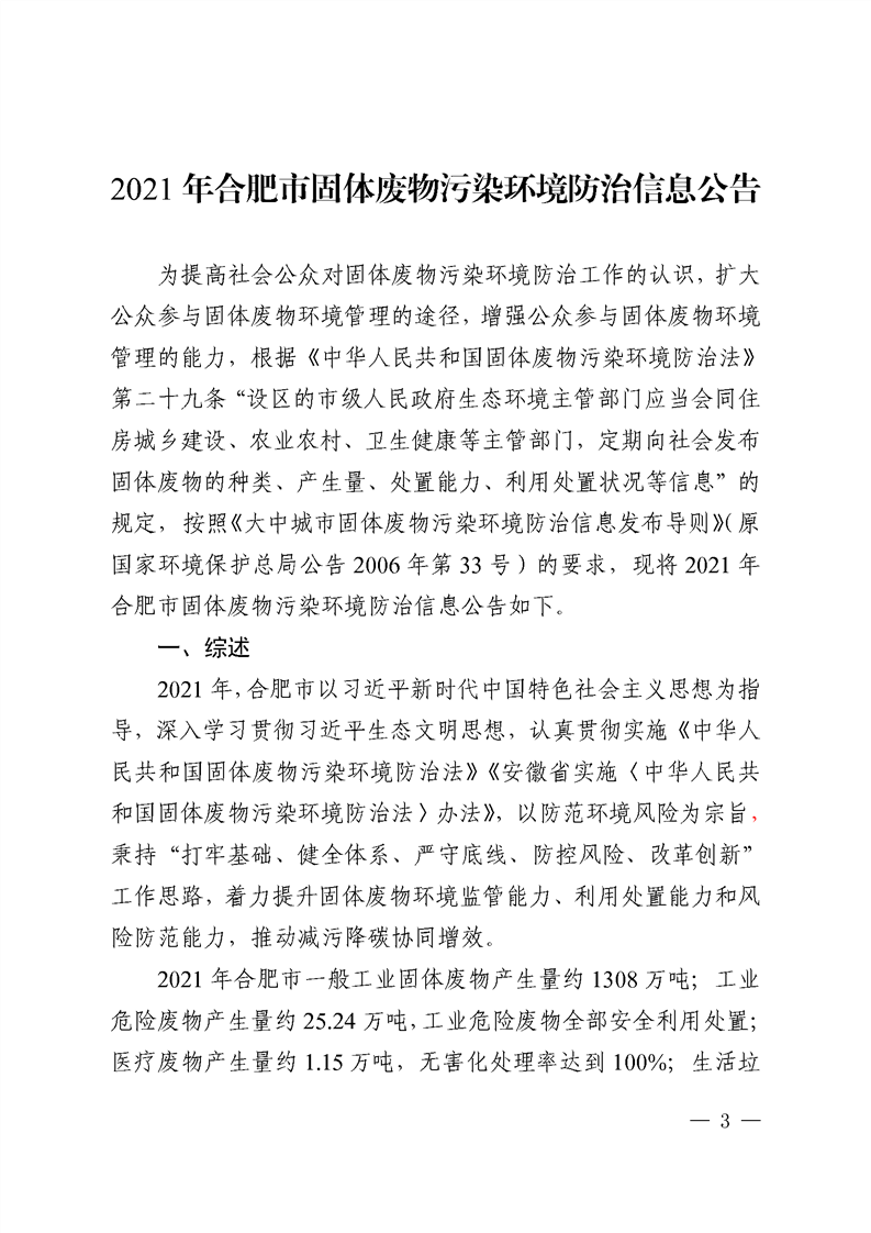 根據(jù)《大中城市固體廢物污染環(huán)境防治信息發(fā)布導(dǎo)則》(原國家環(huán)境保護(hù)總局公告2006年第33號(hào))要求,日前,合肥市生態(tài)環(huán)境局向社會(huì)公開發(fā)布2021年合肥市固體廢物污染環(huán)境防治信息公告,提高公眾對(duì)固體廢物污染環(huán)境防治工作的認(rèn)識(shí),擴(kuò)大公眾參與固體廢物環(huán)境管理的途徑。 強(qiáng)化危險(xiǎn)廢物管理。2021年,全市工業(yè)危...