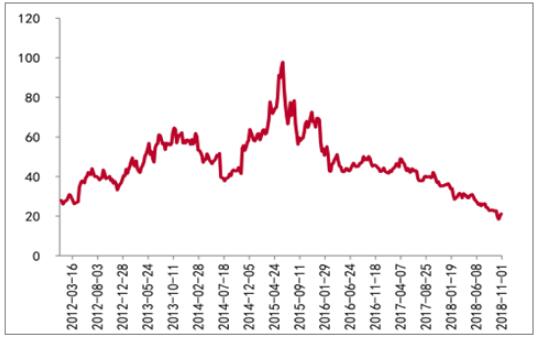 2018Q3環(huán)保板塊整體實(shí)現(xiàn)營業(yè)收入1108.3億,同比增加12.5%,增速下滑10.6pct,整體歸母凈利潤(rùn)為118.9億,同比減少17.8%,環(huán)保板塊收入端增速出現(xiàn)下滑趨勢(shì),而利潤(rùn)端則首次出現(xiàn)負(fù)增長(zhǎng)。2018Q3環(huán)保板塊整體毛利率為31.4%,同比減少1.1pct,毛利率下降或與上游原材料成本提...