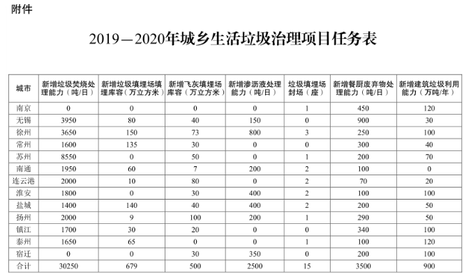 近日,江蘇省人民政府辦公廳發(fā)布了江蘇省城鄉(xiāng)生活垃圾治理工作實(shí)施方案的通知,并印發(fā)了《江蘇省城鄉(xiāng)生活垃圾治理工作實(shí)施方案》,《方案》提出,到2020年底,全省生活垃圾無(wú)害化處理設(shè)施處理能力滿足需求,無(wú)害化處理能力達(dá)到8.5萬(wàn)噸/日以上,城鄉(xiāng)生活垃圾無(wú)害化處理率達(dá)到98%以上,除按規(guī)劃實(shí)施統(tǒng)籌處理的城市...