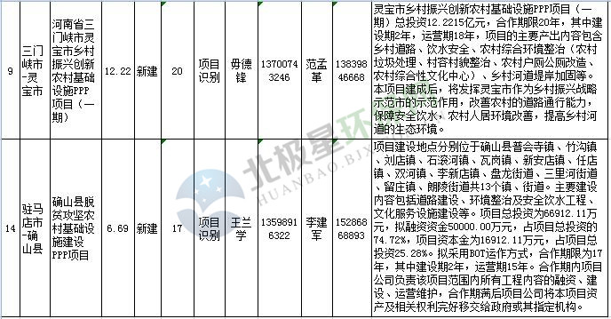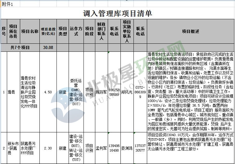 根據(jù)《河南省財(cái)政廳PPP項(xiàng)目庫(kù)入庫(kù)指南》調(diào)整項(xiàng)目庫(kù)的工作安排及最新政策動(dòng)向,我中心對(duì)截止8月底市縣申報(bào)進(jìn)入管理庫(kù)及儲(chǔ)備清單的項(xiàng)目進(jìn)行了審查,現(xiàn)將本次調(diào)整結(jié)果予以公告。其中:調(diào)入項(xiàng)目管理庫(kù)項(xiàng)目7個(gè),總投資30億元;調(diào)入項(xiàng)目?jī)?chǔ)備清單項(xiàng)目18個(gè),總投資448億元。