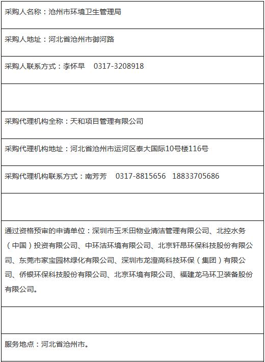 滄州市環(huán)境衛(wèi)生管理局環(huán)衛(wèi)市場化項(xiàng)目中標(biāo)公告