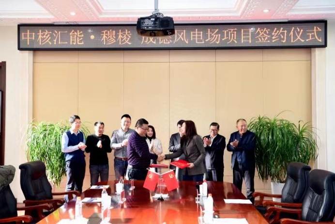 2018年11月22日,穆棱市人民政府與中核匯能有限公司成功簽訂成德風(fēng)電場(chǎng)項(xiàng)目開(kāi)發(fā)建設(shè)協(xié)議書(shū)。穆棱市市委書(shū)記王鐵、市政法委書(shū)記田可柱、副市長(zhǎng)全慧敏,中核匯能有限公司副總經(jīng)理、山東分公司總經(jīng)理王智敏,相關(guān)部門(mén)負(fù)責(zé)同志參加簽約儀式。