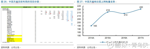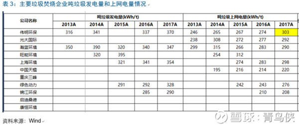 2016年之前,偉明環(huán)保的噸發(fā)和噸上網(wǎng)只能算行業(yè)中上,但2017年其噸上網(wǎng)猛增29kWh至303kwh,排在了行業(yè)第一位;主要是由永強二期(1200t/d,2017年初投運)帶動,其噸上網(wǎng)高達335!
