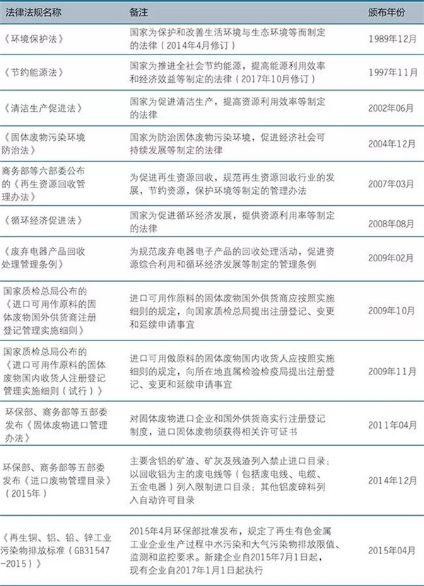 再生鋁行業(yè)屬于資源再生和循環(huán)經(jīng)濟(jì)的范疇,行業(yè)的良好發(fā)展具有重大的經(jīng) 濟(jì)、社會(huì)和環(huán)境意義,是國(guó)家大力發(fā)展的行業(yè)之一。近幾年來,我國(guó)相繼出臺(tái)了大力鼓勵(lì)和支持循環(huán)經(jīng)濟(jì)、再生金屬行業(yè)發(fā)展的眾多政策性文件。