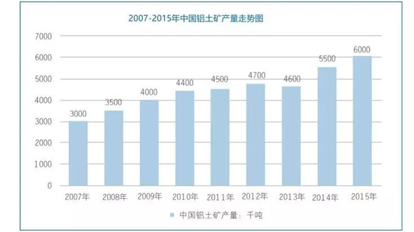 2015年中國(guó)鋁土礦產(chǎn)量為6000萬噸,占同期全球總產(chǎn)量的21.9%。按照同期中國(guó)鋁土礦資源儲(chǔ)量,中國(guó)鋁土礦靜態(tài)可采年限僅為14年,遠(yuǎn)低于全球120年的平均水平,加強(qiáng)資源的合理開發(fā)利用是我國(guó)鋁土礦產(chǎn)業(yè)乃至整個(gè)鋁業(yè)所面臨的重要問題。