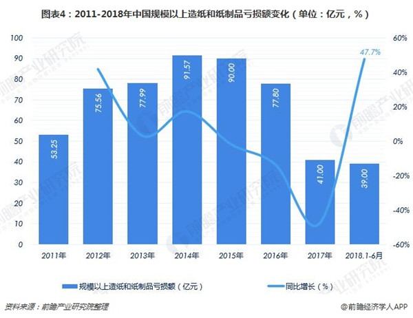 2018年1-6月的虧損額達到39億元,較上年同期增長47.73%,已接近2017年全面水平,我國造紙企業(yè)正面臨著嚴峻的考驗。