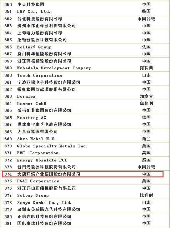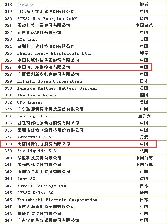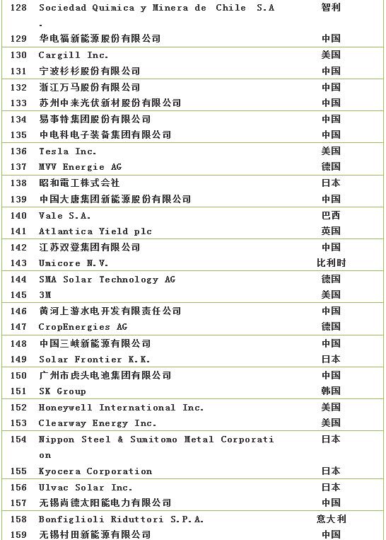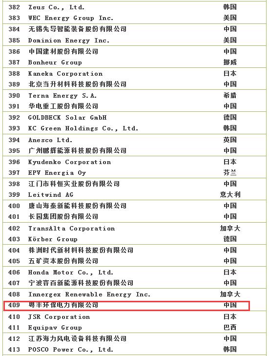 2018全球新能源企業(yè)500強(qiáng)榜單