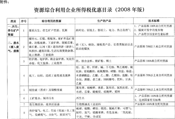 附件: 資源綜合利用企業(yè)所得稅優(yōu)惠目錄(2008年版)