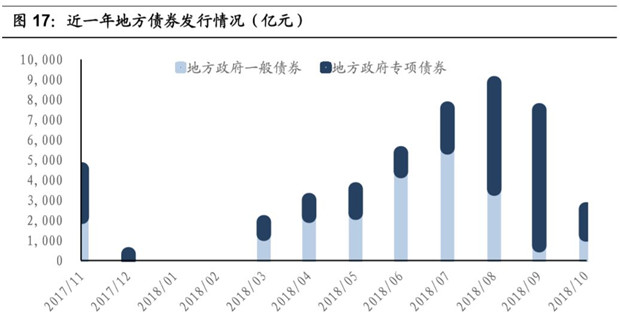 10月份基建投資(不含電力)增速為6.7%,較前3個(gè)月的-1.8%、-4.3%和-1.8%大幅提升。從基礎(chǔ)設(shè)施投資增速來(lái)看,地方債發(fā)行的積極效應(yīng)已經(jīng)開(kāi)始顯現(xiàn)。地方政府專項(xiàng)債為基建補(bǔ)短板提供一定資金支持。今年下半年大量發(fā)行的地方債券,所產(chǎn)生的積極效益將在明年上半年得到集中體現(xiàn)??紤]到當(dāng)前的經(jīng)濟(jì)形勢(shì)與財(cái)政政策,明年地方專項(xiàng)的債發(fā)行規(guī)模有望進(jìn)一步擴(kuò)大。