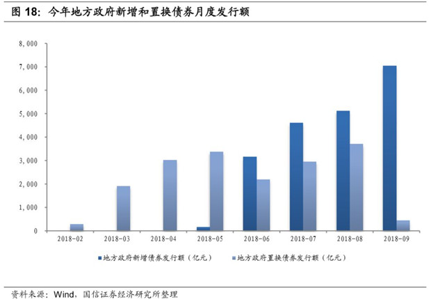 由于大多數(shù)地區(qū)于 5 月才通過(guò)本年預(yù)算調(diào)整方案并最終確定一般債和專項(xiàng)債的限額,因此上半年發(fā)行的地方政府債券主要是置換債券,新增債券從5月份才開(kāi)始發(fā)行。結(jié)合專項(xiàng)債券的月度發(fā)行情況,截至到9月底新增專項(xiàng)債券可能已經(jīng)發(fā)行了1.49萬(wàn)億,年度1.35萬(wàn)億的計(jì)劃或可超額完成。