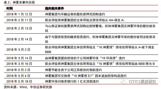 神霧集團(tuán)的主營業(yè)務(wù)為工業(yè)節(jié)能技術(shù)推廣服務(wù),從事工業(yè)節(jié)能減排技術(shù)與資源綜合利用技術(shù)的研發(fā)與推廣。神霧環(huán)保技術(shù)股份有限公司是神霧集團(tuán)旗下的上市子公司,由原北京??咸炝⒐?jié)能環(huán)保工程技術(shù)有限公司整體改制成立,2011年在深交所上市,主要為電石行業(yè)提供工業(yè)爐窯清潔生產(chǎn)技術(shù)服務(wù),并為以電石行業(yè)為主的高耗能工業(yè)領(lǐng)域提供電能環(huán)保的工業(yè)爐窯系統(tǒng)的解決方案。2018年3月14日,“16環(huán)保債”未能如期兌付本息,構(gòu)成實(shí)質(zhì)性違約;5月4日,公司公告稱因?yàn)槁男凶芳訐?dān)保義務(wù),造成“16神霧E1”違約。