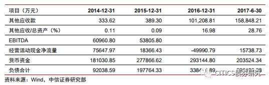 (3)內(nèi)部管理長期混亂,資金占用壓力大。2016年度中期報(bào)告前核查相關(guān)擔(dān)保、2016年度報(bào)告前更換審計(jì)師、2017年度中期報(bào)告編制等原因?qū)е律鲜鰣?bào)告均未按時(shí)披露;2017年度報(bào)告延遲披露,且公司股票一直處于停牌狀態(tài)。2018年3月,因涉嫌信披和債券募資使用違法違規(guī),遭中國證監(jiān)會(huì)調(diào)查。公司于2018年7月6日披露公司及其附屬公司近12個(gè)月內(nèi)未披露的新發(fā)案件及未結(jié)案件累計(jì)涉及金額約人民幣4.34億元(不含部分利息及違約金)。其他應(yīng)收款占總資產(chǎn)的比例逐年攀升,2017年上半年高達(dá)29%,主要是對相關(guān)貿(mào)易公司進(jìn)行的往來,資金被關(guān)聯(lián)方占用比例高。