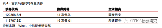 富貴鳥股份有限公司成立于1991年,主要從事男女皮鞋、男士商務(wù)休閑裝及皮具等相關(guān)配飾的研發(fā)、生產(chǎn)及銷售,實(shí)際控制人是林和平。2018年4月29日,應(yīng)于2018年4月23日兌付回售本金65206.8萬元和本期債券第三個(gè)付息年度利息5040萬元,由于無法按期償付,構(gòu)成實(shí)質(zhì)性違約;5月9日,富貴鳥股份有限公司公告稱,由于公司前期存在大額對外擔(dān)保及資金拆借,相關(guān)款項(xiàng)無法按時(shí)收回,無法在2018年5月8日償付本次債券加速清償應(yīng)付的本金及利息。