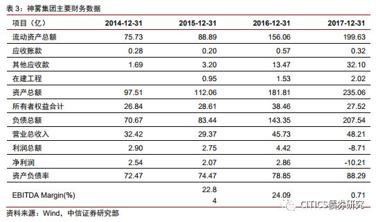 (1)業(yè)務(wù)擴(kuò)張速度快,資金流動(dòng)性趨緊,債務(wù)負(fù)擔(dān)持續(xù)加重。近年來集團(tuán)與子公司在建工程項(xiàng)目合同金額不斷增大,前期的資金投入大。項(xiàng)目投資對外部融資的需求大,依靠負(fù)債規(guī)模持續(xù)擴(kuò)張,由14年的70.67億元增至17年207.54億元。神霧集團(tuán)分別質(zhì)押神霧環(huán)保和神霧節(jié)能兩家上市總公司總持股比例的99.78%、82.49%,外部融資渠道收緊、融資環(huán)境惡劣。且違約后續(xù),相繼有南京銀行借貸糾紛升級(jí)被查封1億元財(cái)產(chǎn)、控股股東持股被全部司法凍結(jié)等事件發(fā)生。