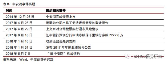 中安消防股份有限公司是一家上市公司(ST中安600654.SH)。2015年借殼樂飛股份上市,主要從事安保系統(tǒng)集成、安保智能產(chǎn)品制造等業(yè)務(wù)。第一大股東為深圳市中恒匯至投資有限公司,實(shí)際控制人為涂國深。2017年5月3號(hào),被上交所列入退市預(yù)警名單,2018年5月7號(hào),“15中安防”無法按期支付本金和利息,構(gòu)成實(shí)質(zhì)性違約。