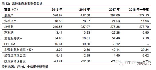 凱迪生態(tài)環(huán)境科技股份有限公司是一家上市公司。2014年陽光凱迪旗下生物資產(chǎn)整體注入凱迪生態(tài),公司成為一家生物質(zhì)發(fā)電、風(fēng)電業(yè)務(wù)為主的清潔能源企業(yè)。2018年5月7號(hào),凱迪生態(tài)發(fā)布公告未能按約定籌措足額償付資金,構(gòu)成實(shí)質(zhì)性違約。公司宣稱加快資產(chǎn)重組來償還債務(wù),但隨后仍有債券違約。
