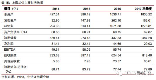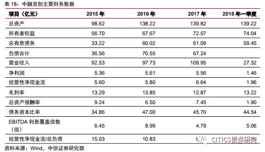 (2)資產(chǎn)規(guī)模擴(kuò)張速度快,債務(wù)期限結(jié)構(gòu)不合理。2016年,公司投資活動(dòng)現(xiàn)金流出13.54億元,主要用于固定資產(chǎn)等長期資產(chǎn)投資以及惠澤農(nóng)牧100%股權(quán)收購,負(fù)債總額為70.55億元,相比于2015年的35.56億元增長98.4%,大規(guī)模舉債對外投資加大了公司2016年的財(cái)務(wù)杠桿。2017年末,公司短期債務(wù)高達(dá)25.3億元,貨幣資金20.95億元,其中受限資金15.49億元,實(shí)際可用貨幣資金不足以覆蓋短期債務(wù),造成流動(dòng)性缺口。此外,2018年以來信用債認(rèn)購需求不足,使得企業(yè)再融資面臨一定壓力,對中融雙創(chuàng)信用環(huán)境產(chǎn)生較大影響。