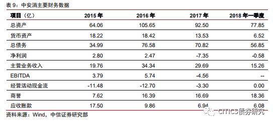 (2)負(fù)債驅(qū)動(dòng)并購。中安消2015-2017年凈利潤為2.8億、2.5億、-7.4億,扣除非經(jīng)常損益后歸屬于母公司利潤同比增長27%、-82%、-2017%,中安消借殼上市置入資產(chǎn)經(jīng)營業(yè)績,在2015、2016年度均未達(dá)業(yè)績承諾,經(jīng)營質(zhì)量并沒有改善,公司自身運(yùn)營并沒有明顯改善,靠發(fā)債補(bǔ)充公司流動(dòng)資金。2015年12月,發(fā)行信用債“15中安消”,募集資金5億元,主要用于補(bǔ)充流動(dòng)資金,截至2016年底,已使用49,600.00萬元用于補(bǔ)充公司流動(dòng)資金。2016年11月份,發(fā)行“16中安消”募集資金11億元,截至2017年12月31日,已使用近4億元用于償還銀行借款及利息,近7億元用于補(bǔ)充公司流動(dòng)資金。