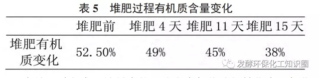 堆肥過程中有機(jī)質(zhì)變化見表5。