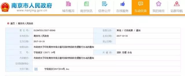 第一條 為鼓勵居民、企業(yè)參與低價值可回收物的回收利用,促進(jìn)生活垃圾減量化和資源化處理,依據(jù)《南京市生活垃圾分類管理辦法》等有關(guān)法律、法規(guī)和規(guī)章的規(guī)定,結(jié)合本市實(shí)際,制定本辦法。
