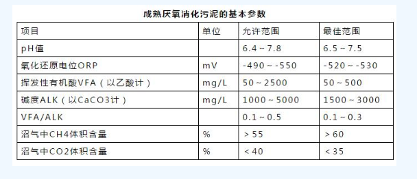 培養(yǎng)結(jié)束后,成熟的污泥呈深灰到黑色,有焦油氣味但無硫化氫氣味,pH值在7.0~7.5之間,污泥容易脫水和干化。對進(jìn)水的處理效果高,產(chǎn)氣量大,沼氣中甲烷成分高。培養(yǎng)成熟的厭氧消化污泥的基本指標(biāo)和參數(shù)見下表。
