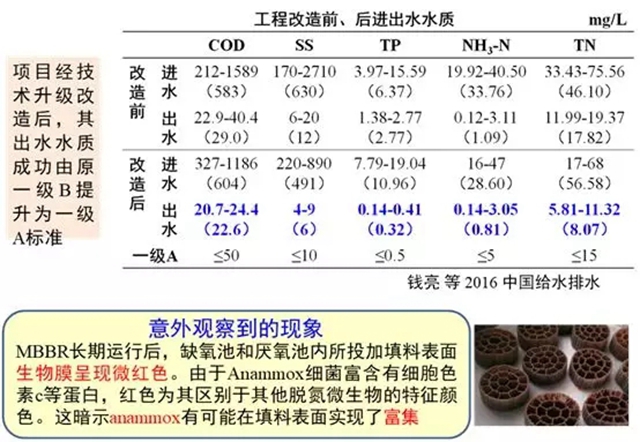 瑞典Sjölunda污水廠是全球首座采用ANITATMMox生物膜的污水廠,核心技術(shù)是MBBR,借助填料富集并長(zhǎng)期持有厭氧氨氧化細(xì)菌。Sjölunda污水廠之后對(duì)工藝進(jìn)行了改進(jìn),包括用IFAS 進(jìn)行工藝改進(jìn),氨氮的去除率獲得更進(jìn)一步的提升,比MBBR工藝提高了200%~300% 。