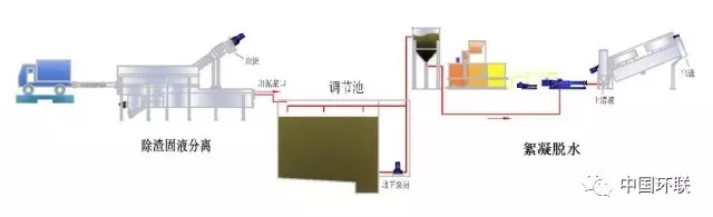 糞便處理采用固液分離,絮凝脫水、整體除臭工藝。經(jīng)固液分離后產(chǎn)出的垃圾和雜物密封打包后送垃圾填埋場或焚燒處理;糞便過濾液進(jìn)入調(diào)節(jié)池后均勻的供給絮凝脫水設(shè)備,通過絮凝脫水設(shè)備將糞渣糞水分離;脫水后的糞渣進(jìn)行好氧堆肥,液體進(jìn)入上清液處理生產(chǎn)線。