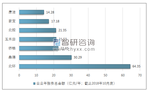 2018年全國環(huán)衛(wèi)領(lǐng)先企業(yè)年服務(wù)總金額情況