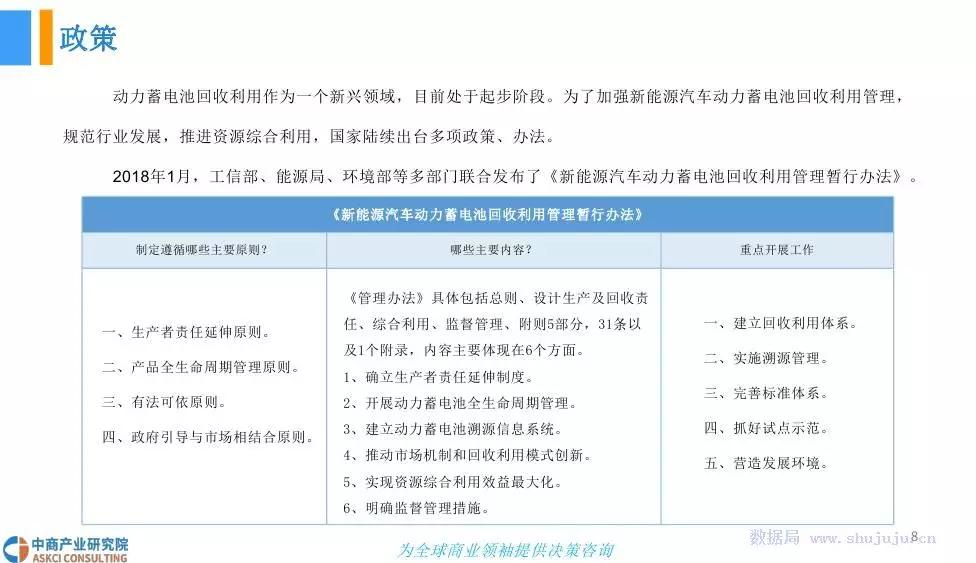 近年來,國家陸續(xù)出臺利好政策,推動新能源汽車動力蓄電池回收利用,有利于環(huán)境保護和社會安全,推進資源循環(huán)利用,有利于促進我國新能源汽車產(chǎn)業(yè)健康持續(xù)發(fā)展,對于加快綠色發(fā)展,建設生態(tài)文明和美麗中國具有重要意義。