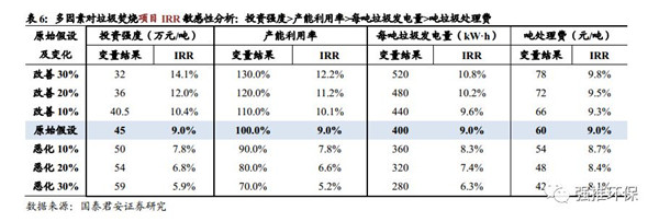 通過對典型垃圾焚燒項目盈利分析建模與敏感性分析,各種輸入變量中,對項目IRR影響的敏感性排序為,單位產(chǎn)能投資強度>產(chǎn)能利用率>每噸垃圾發(fā)電量>噸垃圾處理費。