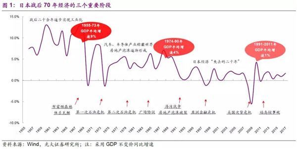 日本在“二戰(zhàn)”后的70多年時間里,取得了舉世矚目的經(jīng)濟騰飛,在亞洲國家中,率先進入發(fā)達國家之列,也完成了工業(yè)化、城鎮(zhèn)化的進程;在這期間,日本也經(jīng)歷了較完整的經(jīng)濟周期及產(chǎn)業(yè)、能源結(jié)構(gòu)轉(zhuǎn)型。環(huán)保產(chǎn)業(yè)既是工業(yè)、市政發(fā)展的重要衍生需求,也是約束宏觀經(jīng)濟的資源要素。本篇報告中,我們將透過日本的經(jīng)濟周期,詳細分析日本在發(fā)展中所面對的環(huán)境污染問題、環(huán)保政策的歷程以及環(huán)保市場的演變。