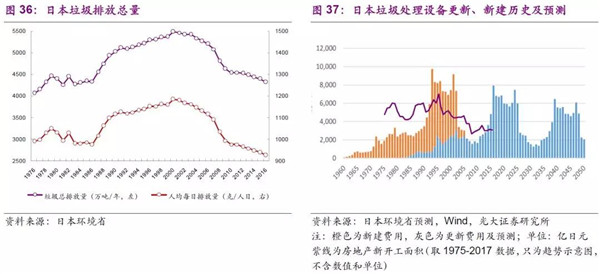 整體上看,2000年后隨著循環(huán)經(jīng)濟制度的推行,疊加經(jīng)濟周期和產(chǎn)業(yè)結(jié)構(gòu)的不斷變化,日本垃圾的總排放量、人均排放量均呈現(xiàn)減少趨勢,而垃圾處理設(shè)備周期也和工業(yè)化、城鎮(zhèn)化及房地產(chǎn)周期密切相關(guān)。