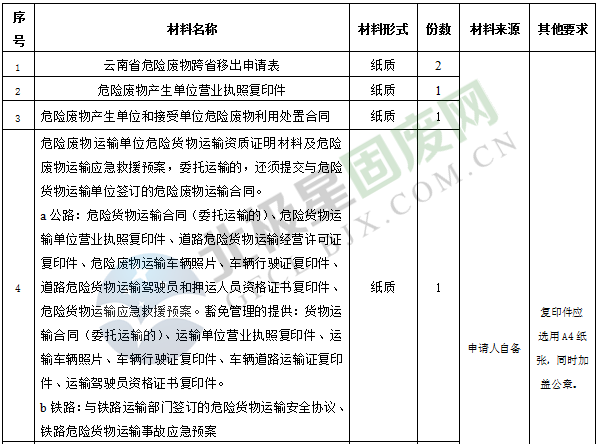 (一)危險(xiǎn)廢物轉(zhuǎn)移跨省移出申請(qǐng)材料目錄