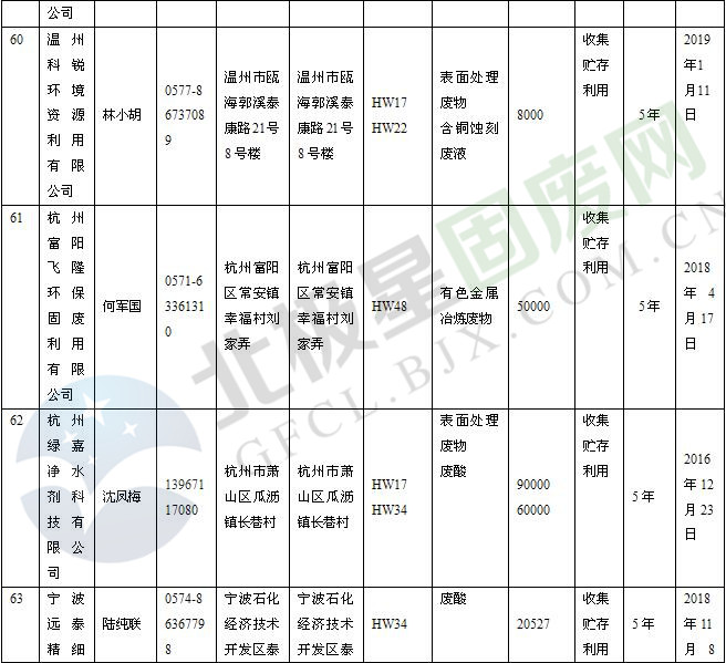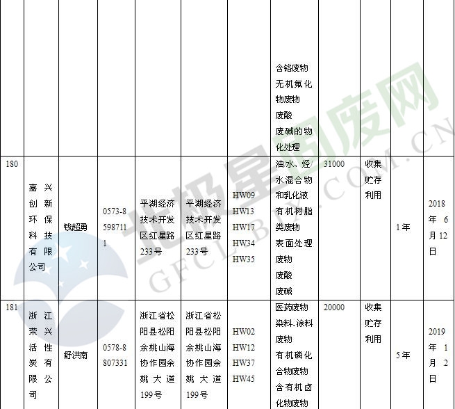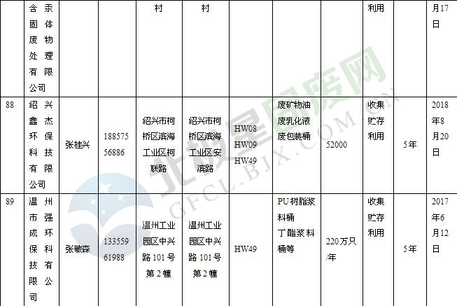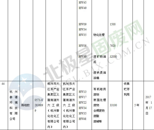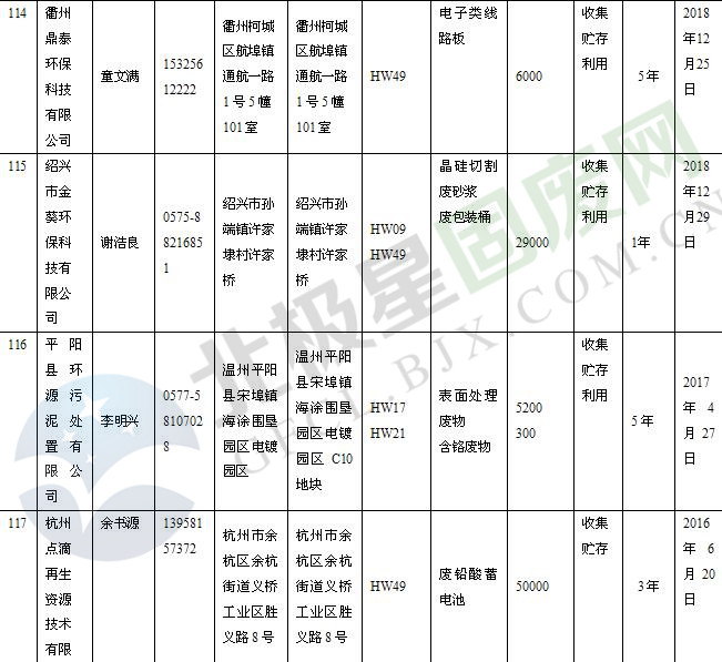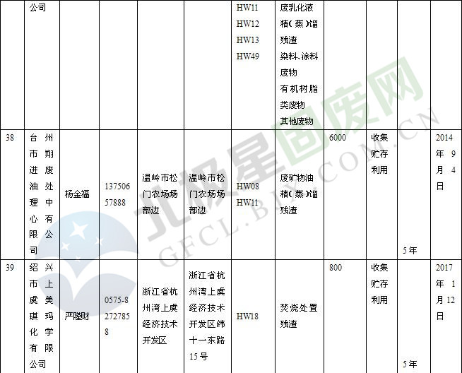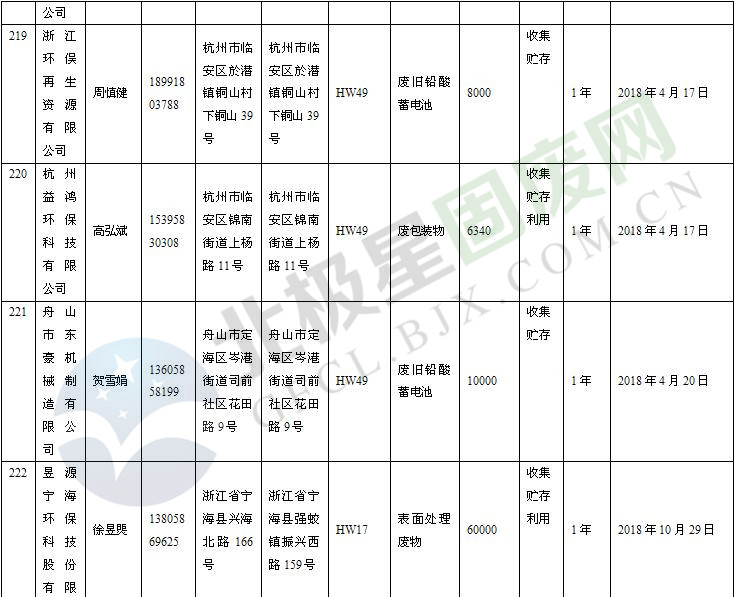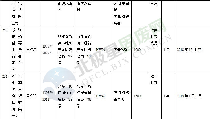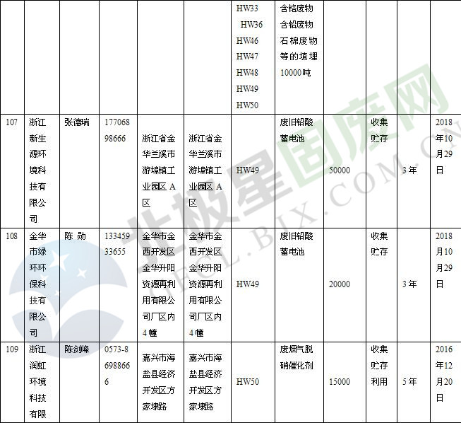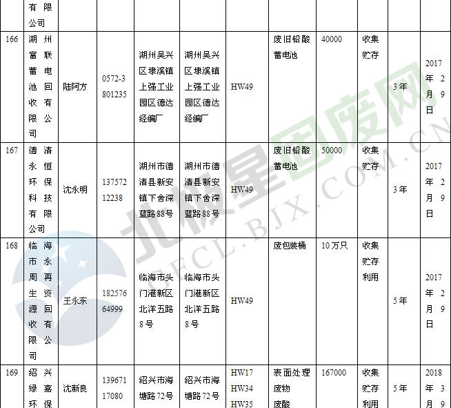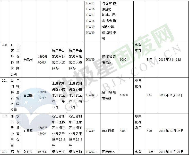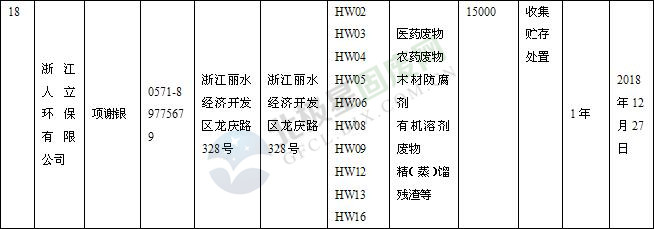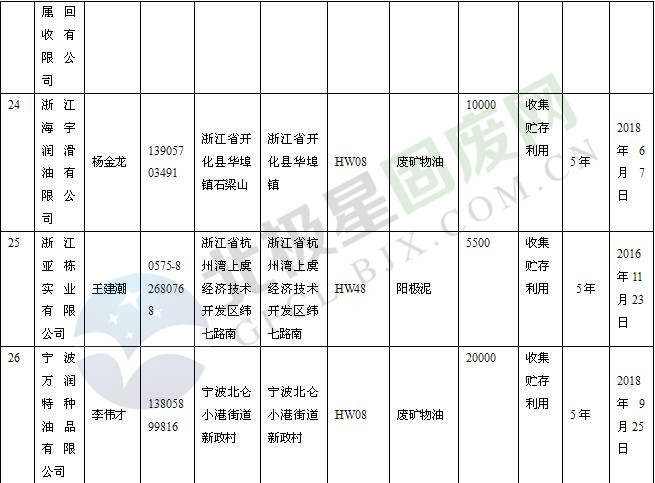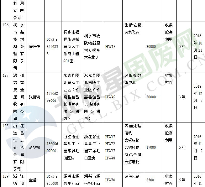 本文整理了浙江省截止至2019.1.22的危險廢物經(jīng)營單位,詳情如下: