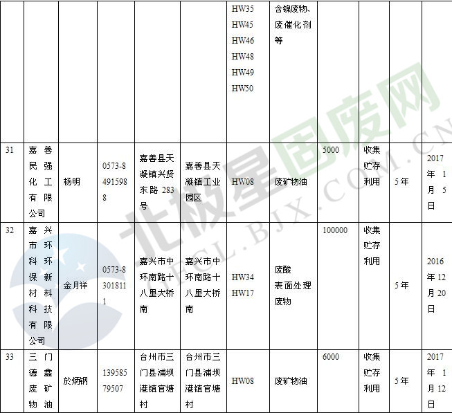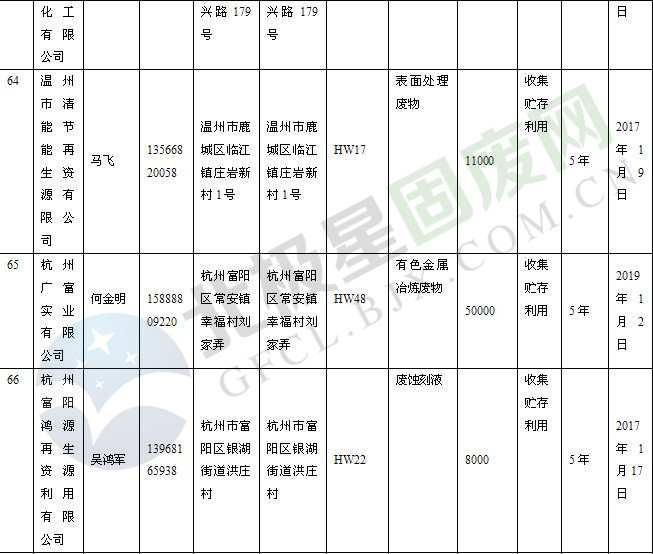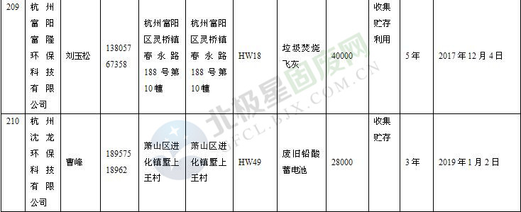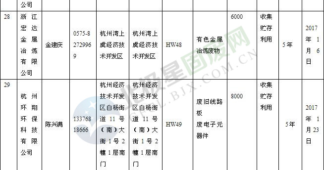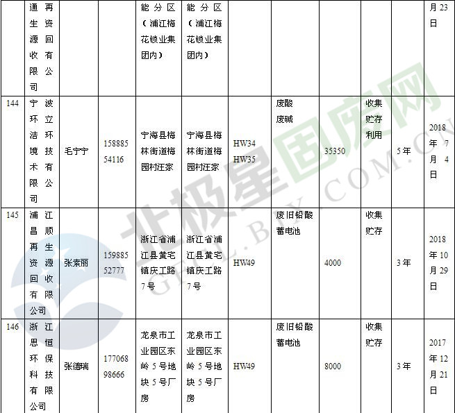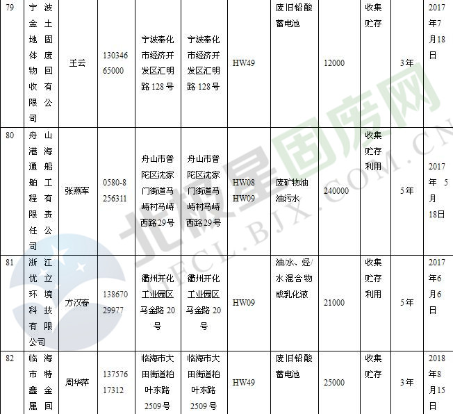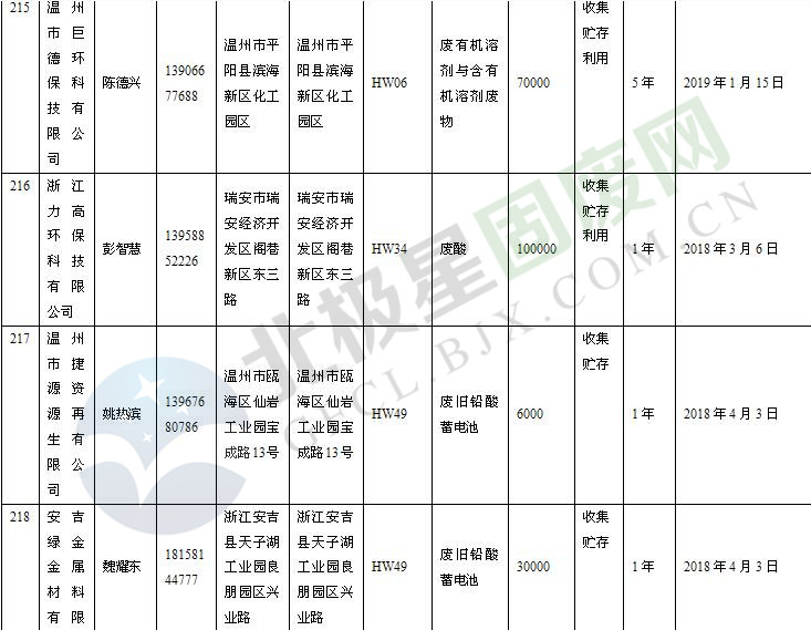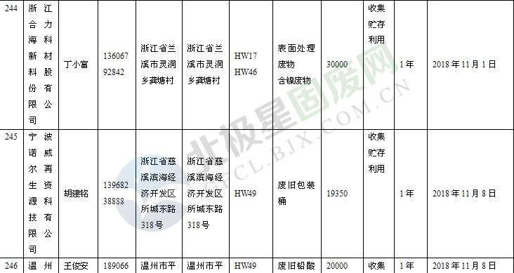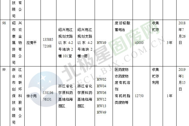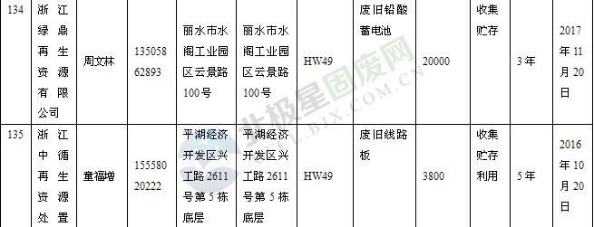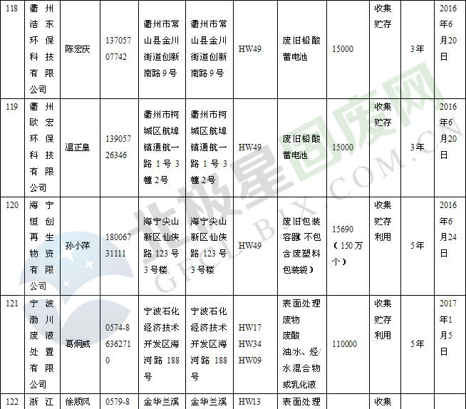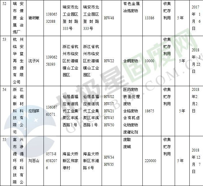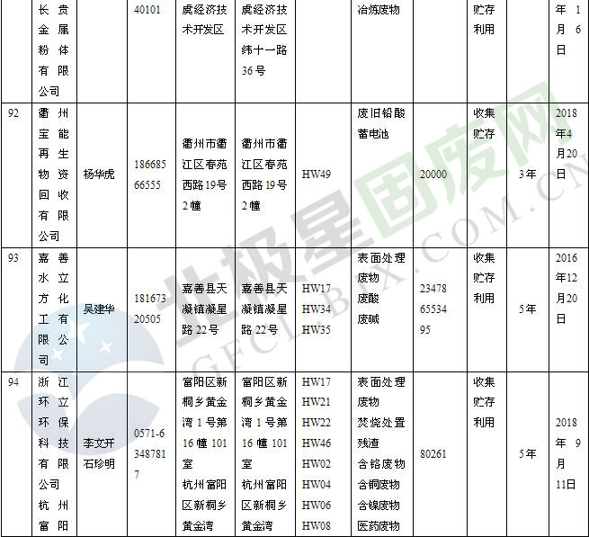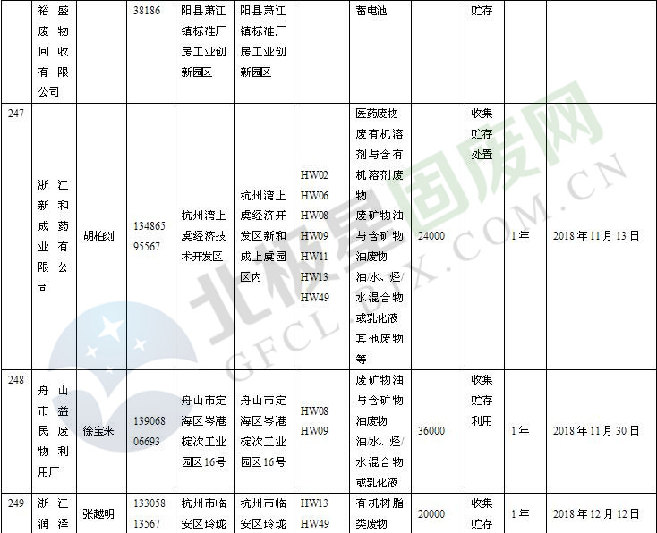 本文整理了浙江省截止至2019.1.22的危險廢物經(jīng)營單位,詳情如下: