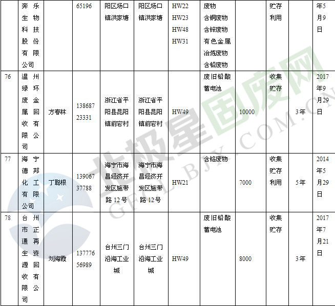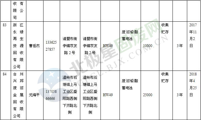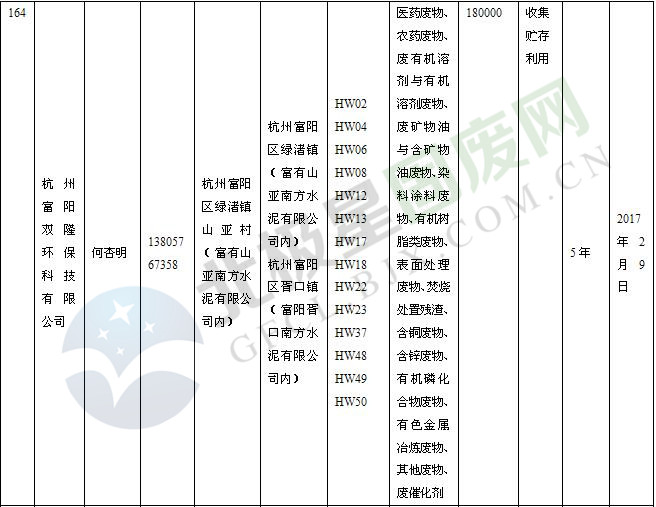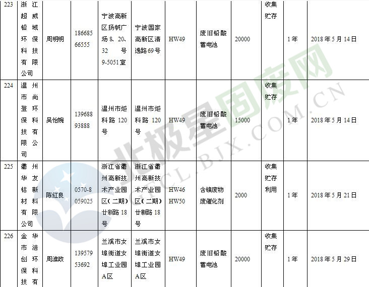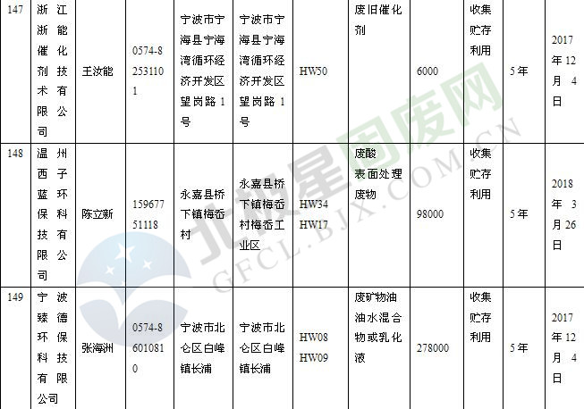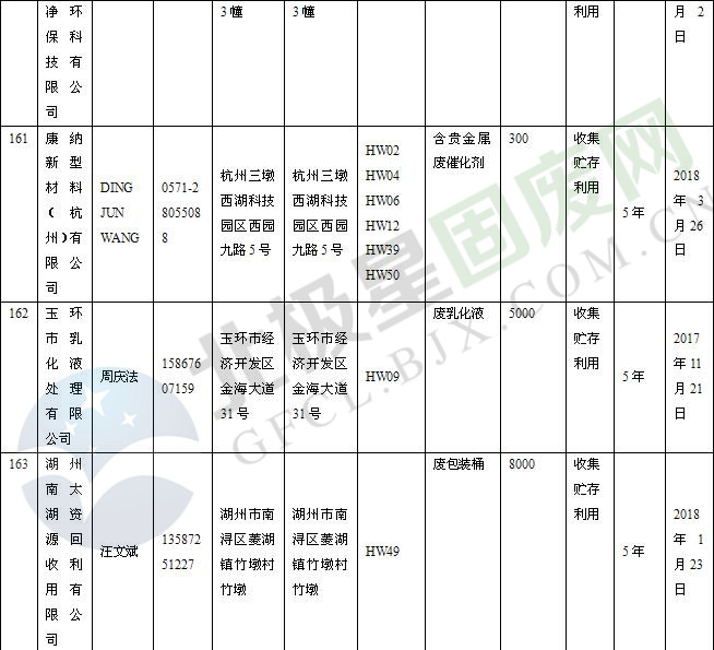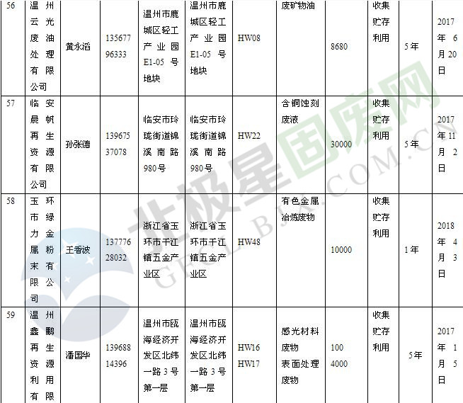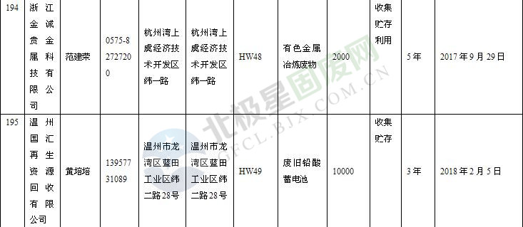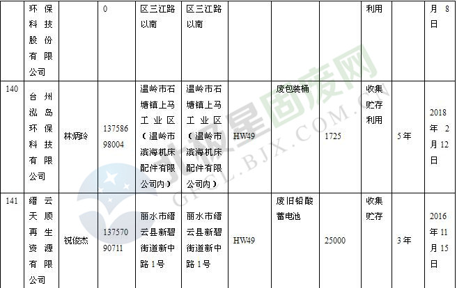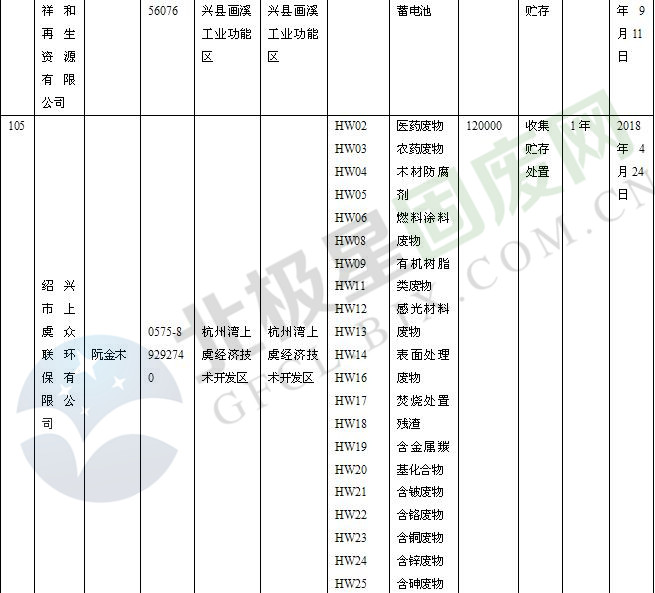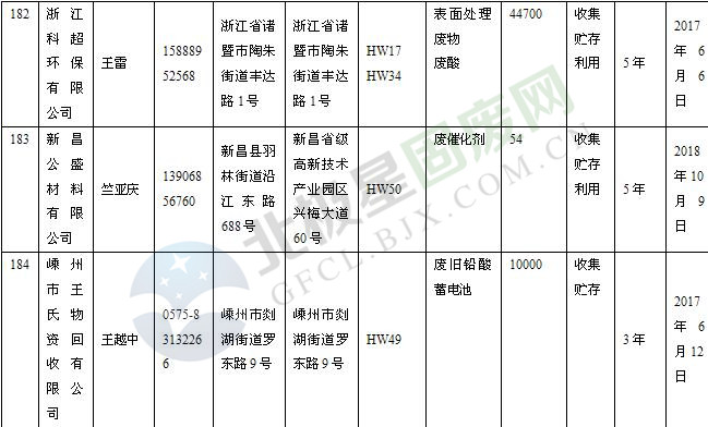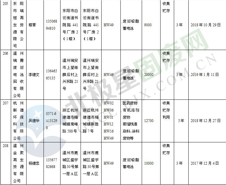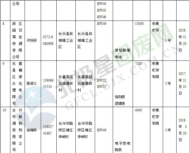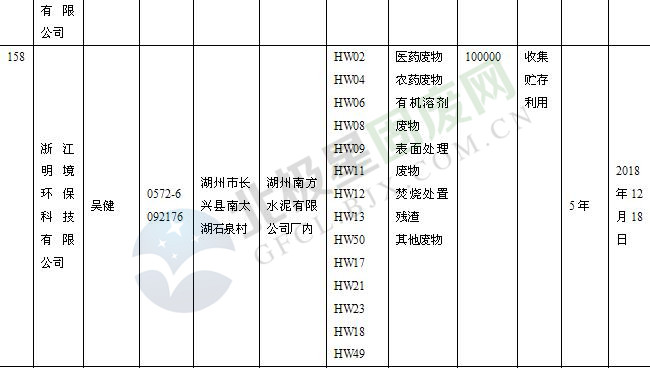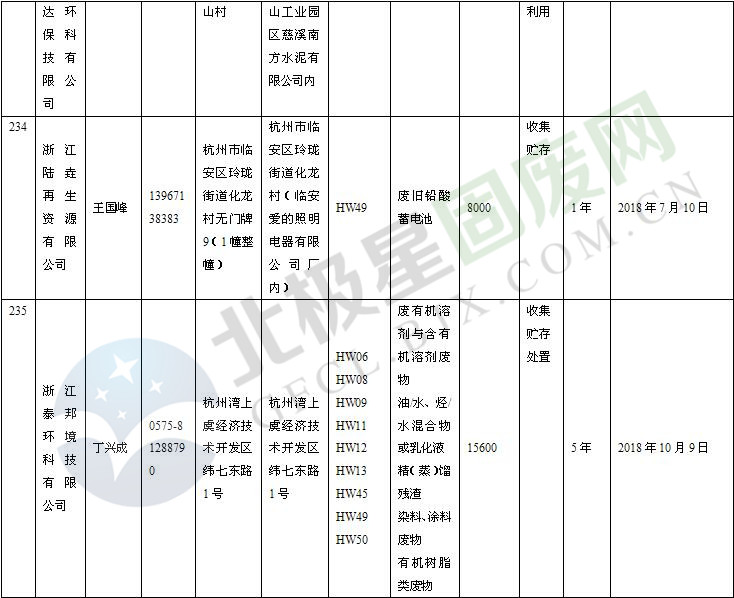 本文整理了浙江省截止至2019.1.22的危險廢物經(jīng)營單位,詳情如下: