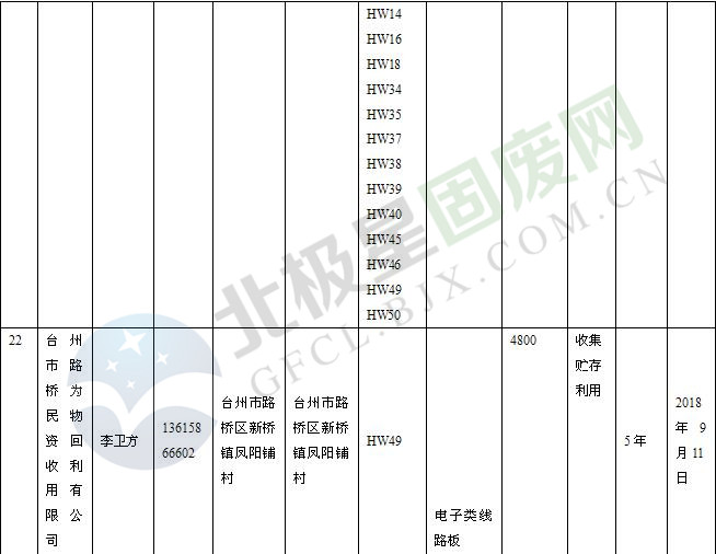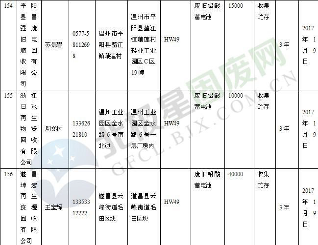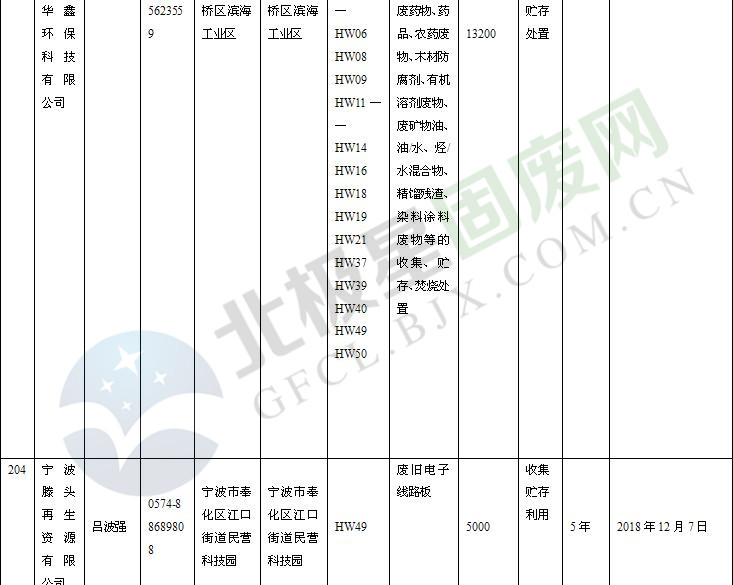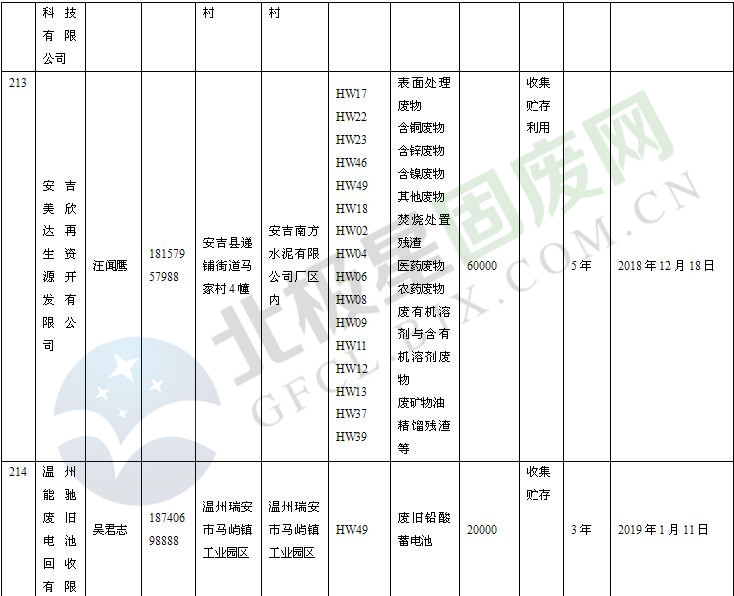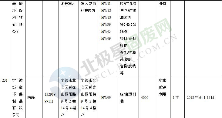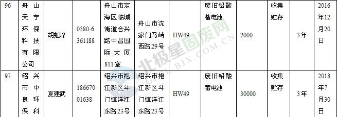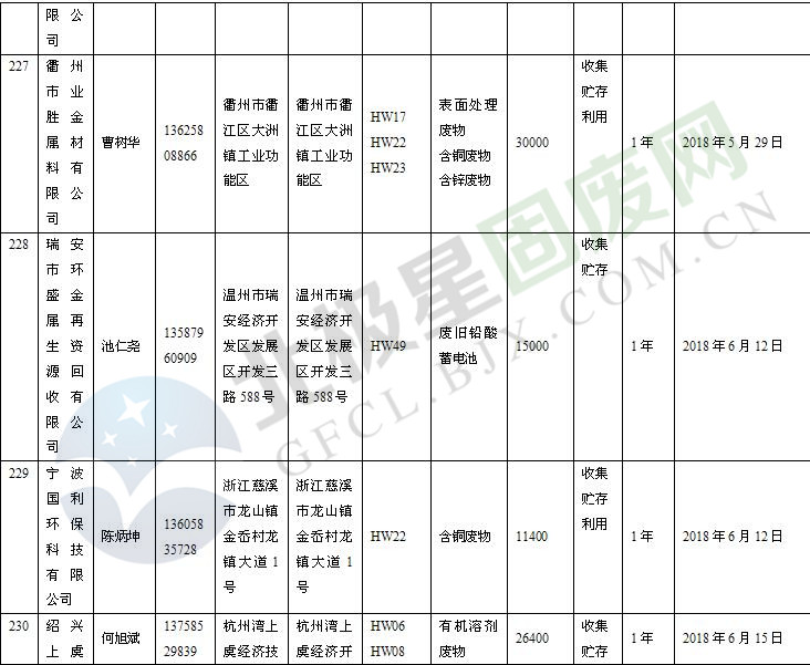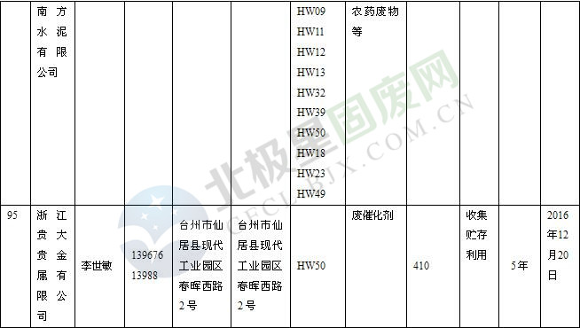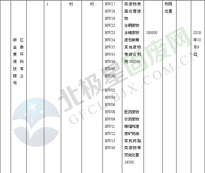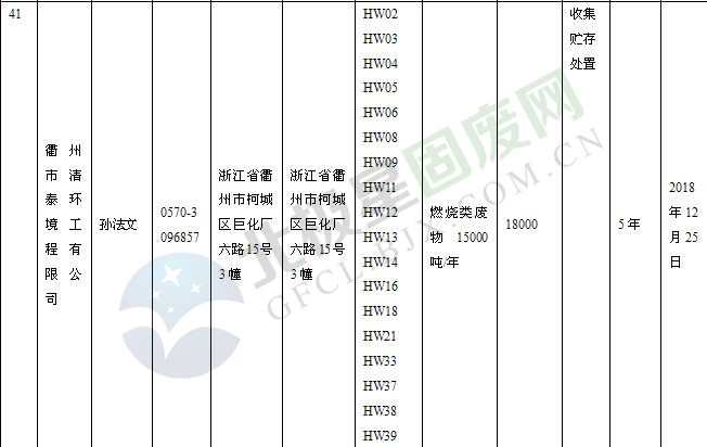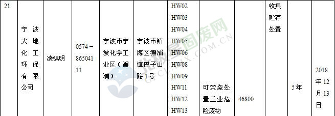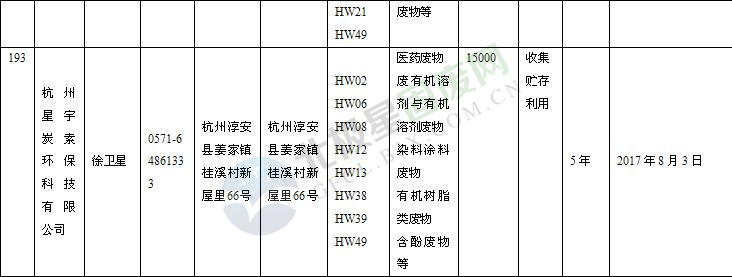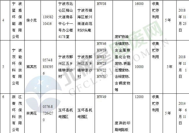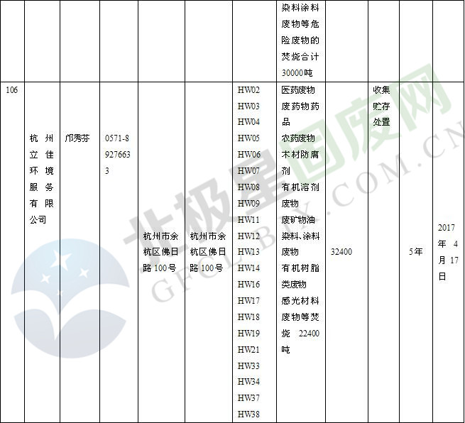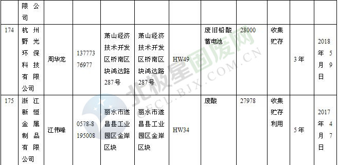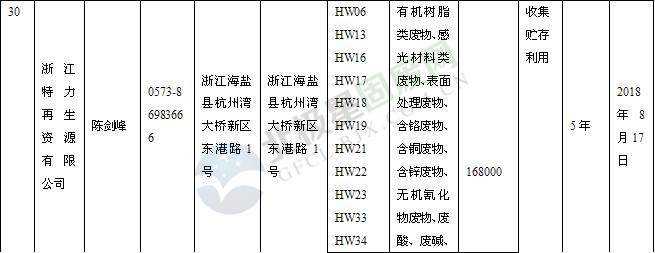 本文整理了浙江省截止至2019.1.22的危險廢物經(jīng)營單位,詳情如下: