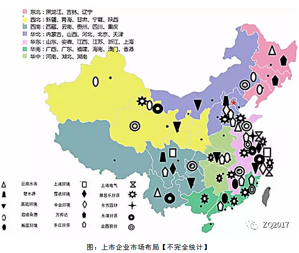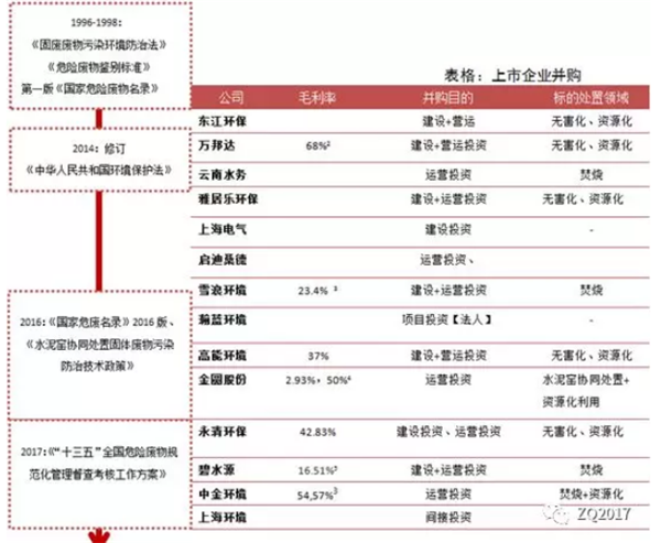 經(jīng)營資質(zhì)是進(jìn)入危廢處置的門檻,并購企業(yè)是進(jìn)入危廢市場(chǎng)的有效方式。據(jù)不完全統(tǒng)計(jì),2017-2018年,危廢行業(yè)并購事件約為30起。從數(shù)量來看,東江環(huán)保、永清環(huán)保并購活躍,從標(biāo)的規(guī)模,金圓股份、中金化境、中金環(huán)境均在10萬噸/年以上。從股權(quán)比例來看,控股形式占主流。基于上市公司分析【下圖】:目前東江環(huán)保、高能環(huán)境、雅居樂環(huán)保布局基本涵蓋全國范圍,碧水源、云南水務(wù)主要集中在京津冀及周邊地區(qū),這和公司的業(yè)務(wù)以及區(qū)域資源需求有較大的聯(lián)系。而雪浪環(huán)境、上海環(huán)境現(xiàn)階段主要在長三角和西南工業(yè)區(qū)域拓展。