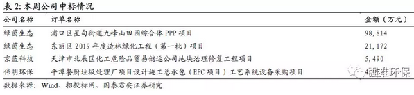 根據(jù)公告與招投標信息統(tǒng)計,本周環(huán)保公司中新增訂單4單、中標總金額13.01億;新增訂單前三名分別為綠茵生態(tài)、京藍科技、偉明環(huán)保。