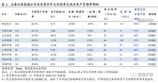 1. 垃圾焚燒主要企業(yè)項目落地需大額資本開支