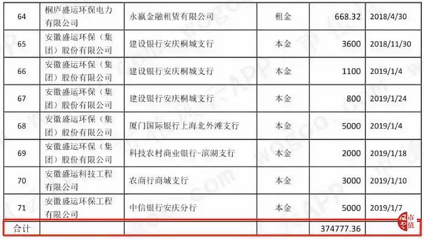 截止2019年2月14日,盛運環(huán)保逾期債務共計71筆,逾期起始日最早為2017年7月20日,最晚為2019年1月7日,逾期性質(zhì)包括本金、利息、租金和項目貸款等,逾期債務高達37.48億元。
