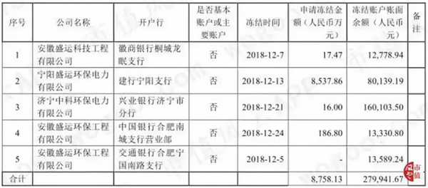 因為欠債、被起訴等,盛運環(huán)保及其子公司自2018年3月以來多個銀行賬戶被凍結(jié)。