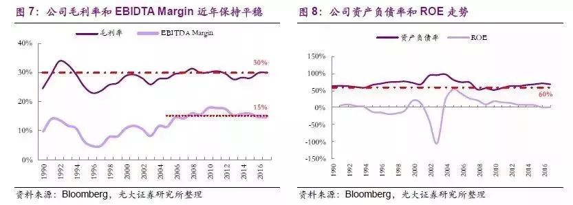 隨著公司SK環(huán)境服務(wù)營(yíng)業(yè)收入穩(wěn)步增長(zhǎng),公司各項(xiàng)業(yè)務(wù)占比基本保持穩(wěn)定,同時(shí)毛利率和EBITDA Margin 在近年也保持穩(wěn)定(分別維持在30%和15%左右);另一方面,公司資產(chǎn)負(fù)債率在收購(gòu)SK 化學(xué)分部飆升至90%以后,通過(guò)穩(wěn)健經(jīng)營(yíng)逐步回落至60%的平均水平,但是公司凈利率近年來(lái)表現(xiàn)不盡如人意,影響ROE持續(xù)走低。
