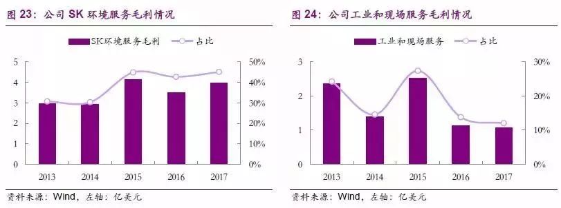 SK環(huán)境及性能產(chǎn)品服務(wù)的重要性在逐步提升。公司在2012年收購(gòu)Safety-Kleen 后,SK 環(huán)境及性能產(chǎn)品服務(wù)成為了繼傳統(tǒng)危廢技術(shù)服務(wù)之外的第二大業(yè)務(wù),雖然業(yè)務(wù)收入絕對(duì)額變化不大,但業(yè)務(wù)收入占比逐年上升,且該項(xiàng)業(yè)務(wù)為公司帶來(lái)了可觀(guān)的毛利,甚至超過(guò)了傳統(tǒng)的危廢處置業(yè)務(wù),2017年該項(xiàng)業(yè)務(wù)毛利占比達(dá)45.12%,是公司業(yè)績(jī)的重要支撐。2016年,公司為了更好地提供一站式服務(wù),以2.048億美元戰(zhàn)略性收購(gòu)與石油產(chǎn)品銷(xiāo)售相關(guān)的7家公司業(yè)務(wù),使廢油業(yè)務(wù)形成供-產(chǎn)-銷(xiāo)一體化的經(jīng)營(yíng)模式。廢油一旦收集完畢,就會(huì)被送到煉油廠(chǎng)進(jìn)行處理,清除掉所有的污染物和雜質(zhì),再作為公司的產(chǎn)品返回市場(chǎng)。廢油業(yè)務(wù)的全產(chǎn)業(yè)鏈覆蓋將進(jìn)一步最大化廢油業(yè)務(wù)的利益獲取。