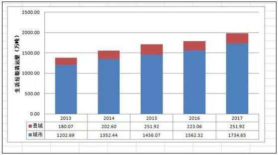 上圖:江蘇省生活垃圾清運量統(tǒng)計,來源:住建部城鄉(xiāng)建設(shè)統(tǒng)計年鑒