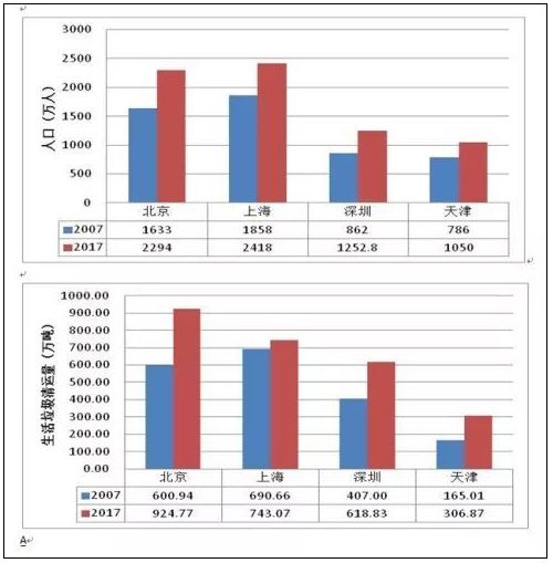 國內(nèi)的數(shù)據(jù)本該可比,實際可比性很差。比如深圳的生活垃圾清運量是天津的兩倍,而統(tǒng)計的人口深圳只比天津多20%,深圳的實際居住人口恐怕明顯被低估。上海的生活垃圾清運量在2013年以前一直比北京高,2013年以后無緣無故地降下來了,是什么因素,是否有人為因素?天津的人均生活垃圾清運量少,并不是真的產(chǎn)生少,而是收集范圍沒有全覆蓋或者沒有統(tǒng)計;上海的人均生活垃圾清運量少,并不是真的產(chǎn)生量少;北京市人均生活垃圾高達1.1千克/人·日,明顯高于天津、上海,這里還不包括廢品,是居住人口沒有充分統(tǒng)計,還是生活垃圾量重復(fù)統(tǒng)計,比如綜合處理廠的生活垃圾最終在填埋場或焚燒廠還要統(tǒng)計一次?