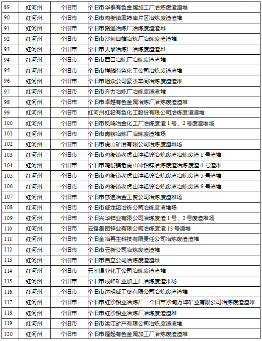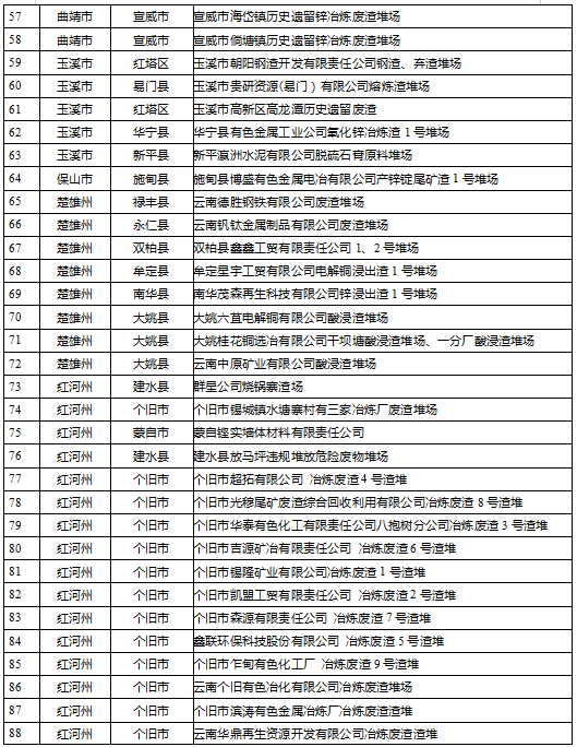 云南省工業(yè)固體廢物堆存場所環(huán)境整治清單(185個)